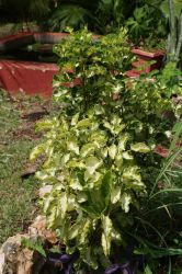 Es un arbusto columnar , de rápido crecimiento que alcanza hasta 6 metros de altura. Se reconoce por sus hojas variegadas de color verde y amarillo, pinnadas, de 30 centímetros de largo, con 7 a 11 hojuelas ovadas de 10 a 13 centímetros de largo, con el margen dentado. Estas hojuelas muestran una variación muy amplia en tamaño, forma y coloración. Bajo condiciones de cultivo el arbusto no produce flores. Es apropiado para formar setos y conjuntos en parques y jardines.